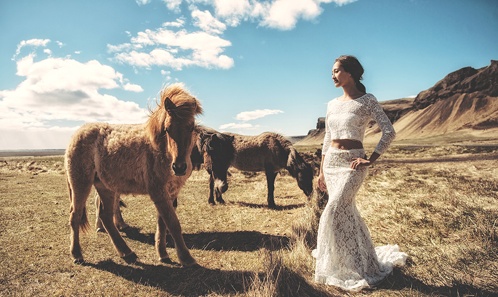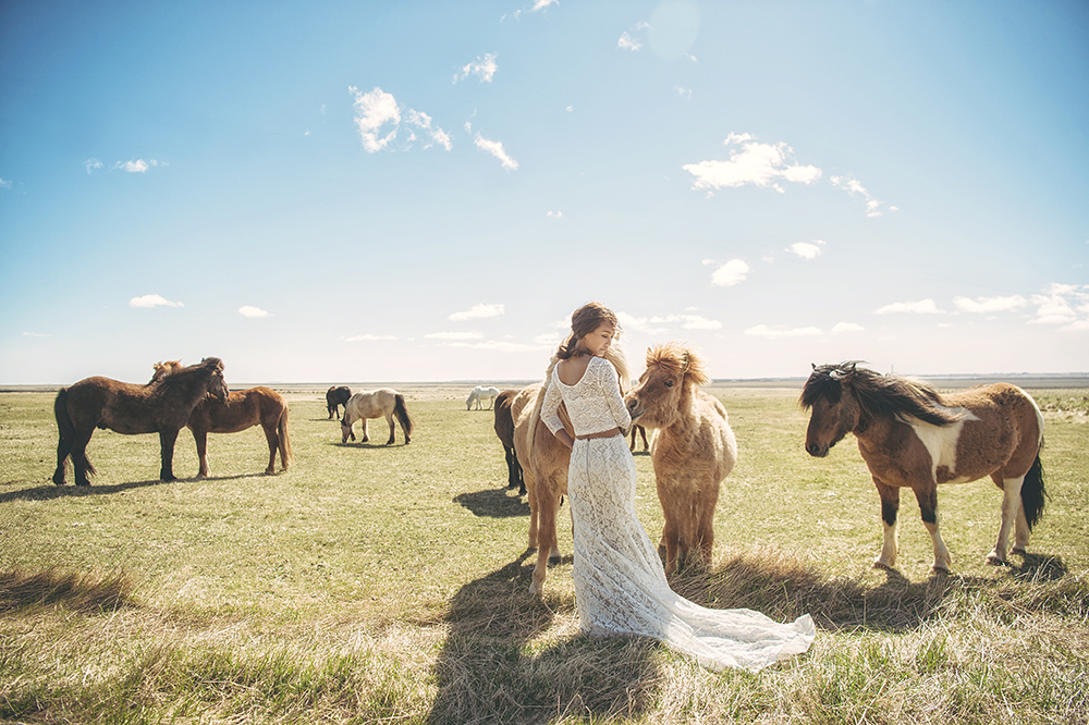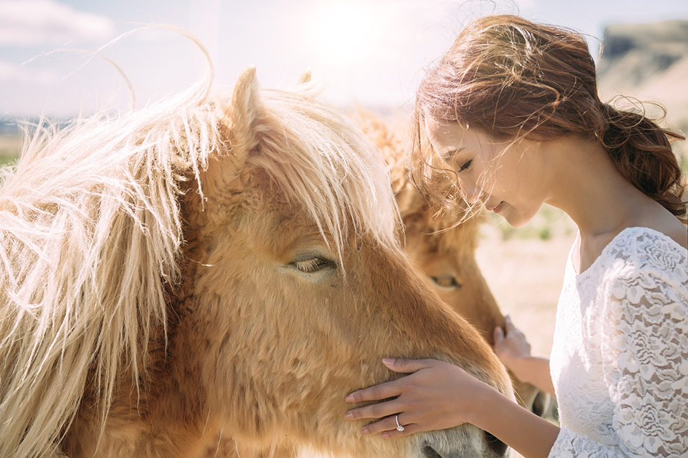 bride and icelandic horse