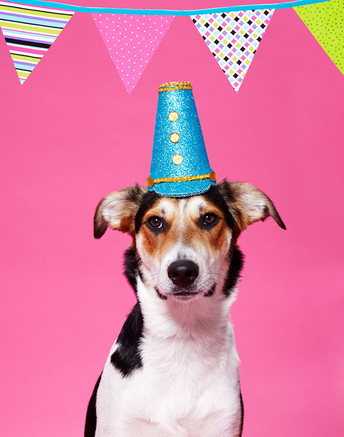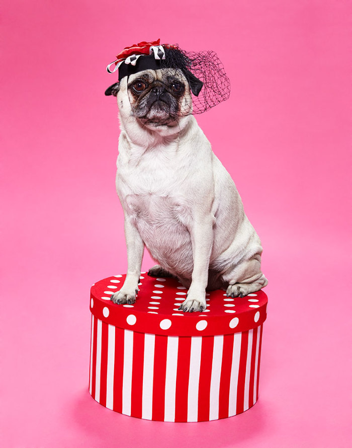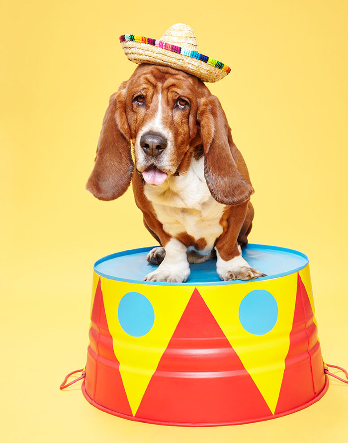 Dogs outfitted in whimsical circus themed attire. Captured inside a large tent containing a mini studio setup during Photoville in Brooklyn, NY.