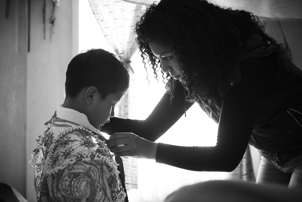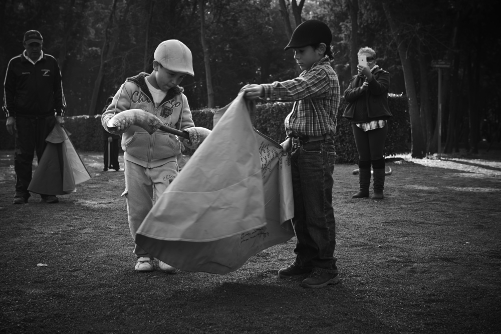 Salvador and Tadeo train for four hours every Saturday and Sunday morning. Since the age of 5 they have been learning the craft of bullfighting. They both obsessively hope to one day become professional matadors. Salvador is from a wealthy family who have brought him to the bullfights weekly since he was a newborn. They are staunch Catholics and believe God will protect Salvador from any future harm, while Tadeo's single mother fears for him and hopes this obsession is a passing fancy, but also supports his passion as best she can. Until they are ready to fight, they train rigorously and attend as many bull fights as they can.