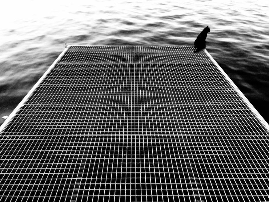 Cat sitting on the trap to the water