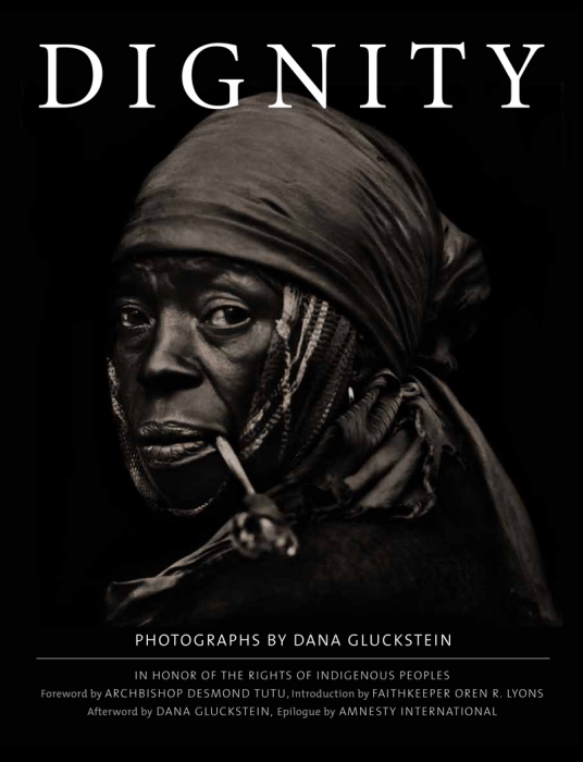 This collection of iconic photographs by Dana Gluckstein honors Indigenous Peoples worldwide and celebrates the 50th Anniversary of Amnesty International, the Nobel Peace Prize-winning human rights organization. Gluckstein, whether photographing a Haitian healer or a San Bushman elder, succeeds in distilling the universality of experience that links us all without diminishing the dignity of the individual. DIGNITY includes more than 90 of Gluckstein’s black-and-white duotone portraits, made over three decades. The photographs express the theme of tribes in transition by capturing the fleeting period of world history where traditional and contemporary cultures collide.