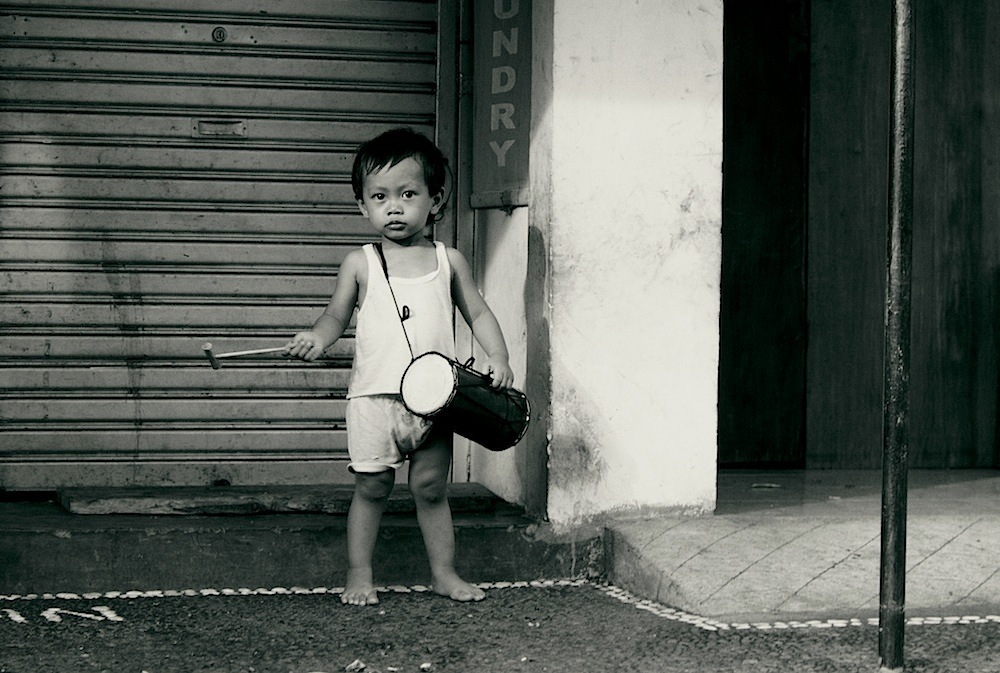 "Little Drummer" (Bali) has been taken from the series "Urak Lawoi" (People of the Sea). It pays homage to the people of Southeast Asia. The portraits have taken shape following my near-death experience in 2004 when the Asian Tsunami struck and the small fishing boat I was travelling in nearly capsized off the coast of Thailand in the Andaman Sea. My recollection of this event has recently appeared in The Guardian and on BBC World Service. In the years since the tsunami, I've been privileged to continually return to the region and strengthen the connection I share with the Urak Lawoi people. My photographs (created over the course of twelve years) document the growth of this relationship and my reverence for this culture, which is as unique and beautiful as the tropical landscapes it inhabits.
