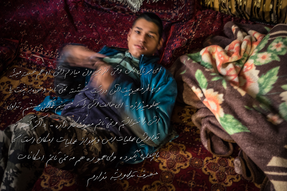During my years of covering Afghanistan, it wasn’t until I met Zarghona that I truly understood the impact of war and what survival. Through this woman, who was a child bride at the age of 10, I have learned how people who know no differently than the day to day of war can still make a life for themselves. Despite having a disabled child who can’t walk and who is now getting too big for her to carry, Zarghona still manages to remain the rock of her family unit. I’ve known Zarghona for over four years now and she continuously surprises me with her strength, compassion and resilience. She has opened her life up to me allowing me to photograph her at her most vulnerable and never once has she complained. I want to show that despite living in a country under siege for decades, the will to survive and find