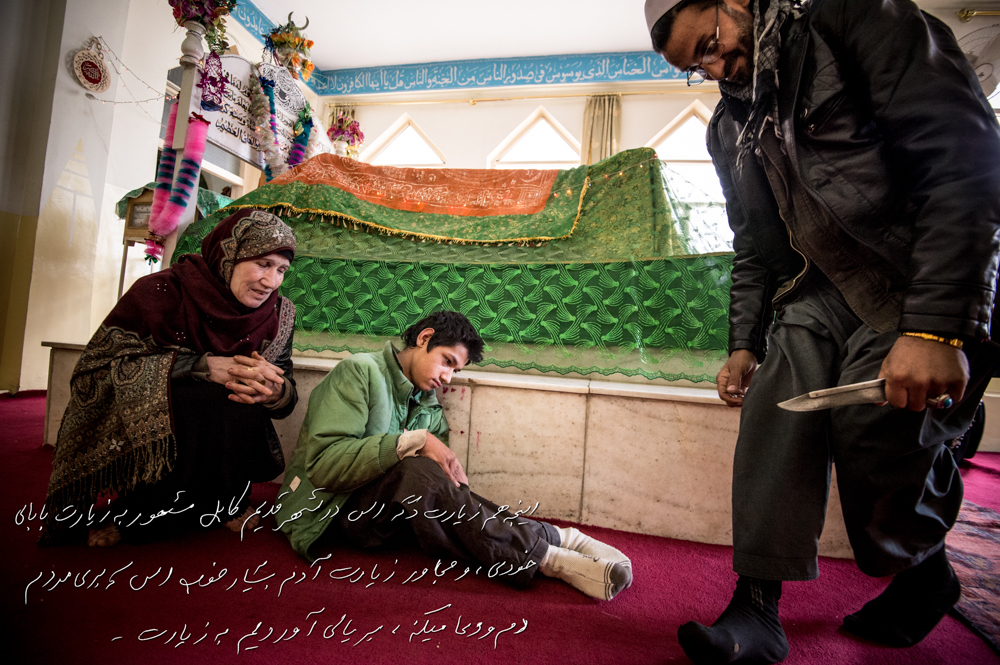 Despite the constant stress of day to day survival, Zarghona’s heart belongs to Bareilly. When I visited in 2014, she took me to the Shrine of Hazrat e BaBay Khode Saib where her son could have a “Damâ€, also known as a healing. While Zarghona and her sister-in-law prayed, Bareilly received the Dam. In 2016, Zarghona had some brief hope for Bareilly when I traveled with them to the International Red Cross Orthopedic Hospital in Kabul. Bareilly would be examined to see if they could operate on his spine. Unfortunately, there was nothing they could do to improve his situation but they were able to give Zarghona a new wheelchair. Even with the bad news, Zarghona didn’t allow it to defeat her.