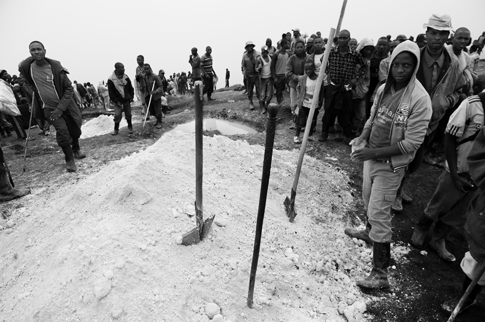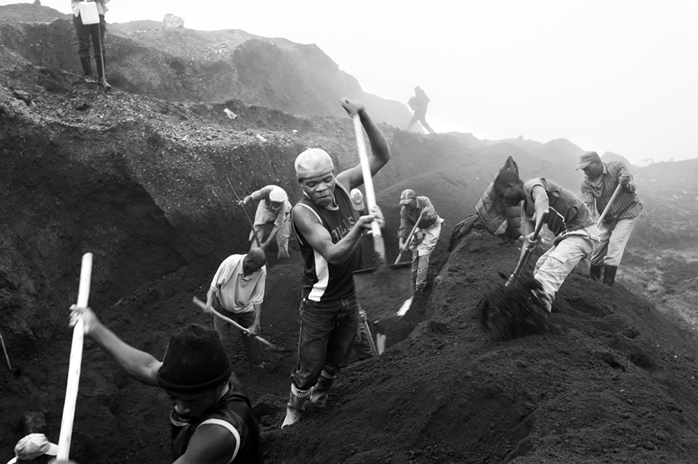Rubaya, DR of Congo, in the Nyange mine. 80% of the world’s reserve of coltan is found in the east of the DR of Congo, a fundamental hiperconductor mineral for the development of the new technologies. The country has been plunged into a extremely complicated conflict with as a many 20 different armed groups operating in North Kivu and South Kivu, some of which are fundamentally financed by controlling the mines. The working conditions of the miners are extremely tough and dangerous, given that the extraction of the mineral continues to be done in a traditional way. Many miners internally displaced within the conflict, come to the mines leaving other more violent zones, with the intention of finding a way, however precarious, of survival. They must face a 15 hour working day, the danger of constant landslides in the subterranean tunnels where they often lose their live, traveling on routes for many hours transporting on their shoulders 50 kilos bags of coltan down a steep and slippy hill. All of this for hardly seven dollars a day.